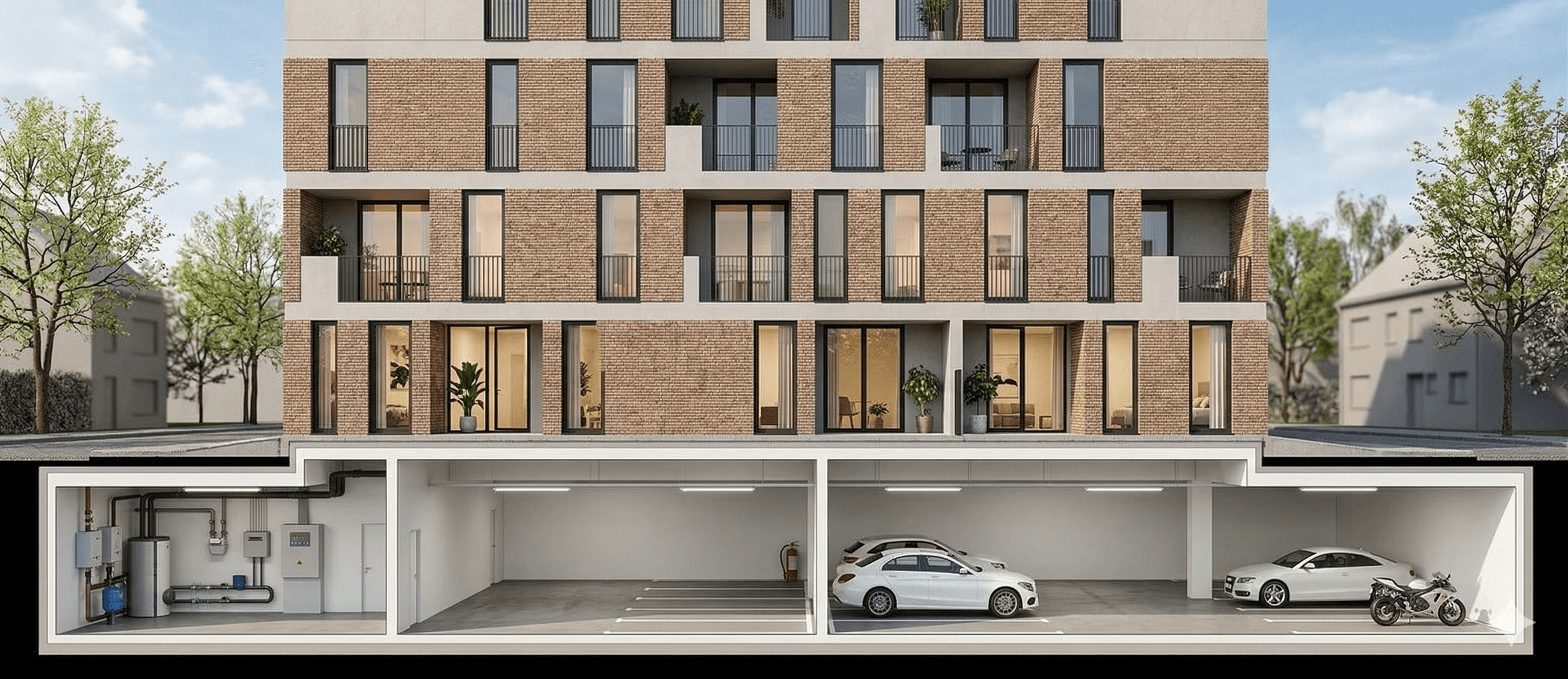 Alle Tiefgaragenstellplätze verfügen über vorbereitete Leerrohre für Ihre private Wallbox.